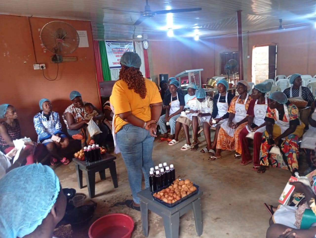 From October 16 to 18, trainees learned hands-on techniques in baking and beverage production, including buns, puff-puff, chin-chin, zobo and soya drinks, iced tea, and liquid soap production. Alongside practical lessons, participants also participated in basic entrepreneurship training, gaining insight into record-keeping, pricing, and customer relations to turn their skills into profitable home-based ventures.